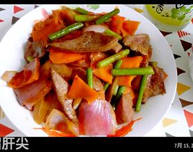鲜肝一定要提前泡半个小时以上,是去血水和腥臭重要步骤!煎炸肝尖是变色立刻盛出!