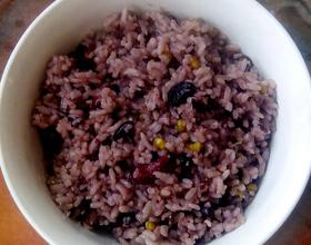 把洗干净的白米和豆一起入锅加水,按煮饭键。