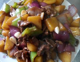 土豆软弱。洋葱,菜椒清脆。红烧色香味俱全。