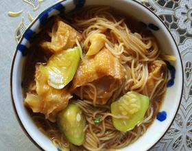 丝瓜去皮,切滚刀块;油条切成小段,蒜拍破备用。