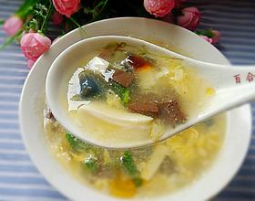 锅中加高汤水烧开(如果没有高汤的话,用清水也可),放入鸭血和豆腐,中火滚开
