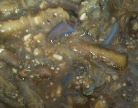 锅下油,蒜洗净剁成蓉下锅,茄子也一起下锅炒一下。
