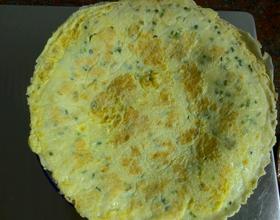 - 5. 半小时后把葱花加到粘米粉里面去~拿出不沾锅,烧热上油不能多哦~拿平常勺汤的勺子~勺3勺粘米粉左右~弄平,煎到粉熟反过来再煎,火不能太大哦,稍微煎煎就反过来把打好的蛋拿勺子扫上一层~反过来把鸡蛋煎熟就可以了~
