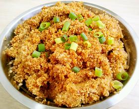 1、家里有料理机的话米粉可以自己做哦!坐锅开中火将大米和糯米还有黄豆放锅里慢慢炒变微黄色后放入花椒粒和干红辣子在一起炒两分钟即可关火,盛出来等凉透了后用料理机打碎即可(在我的老家是用石磨磨粉哈哈!)2、可以将打底的食材换成你自己喜欢的比如说 红薯 土豆 芋头 山药 胡萝卜等等都可以哈!3、如是用普通蒸锅蒸肉的话要适当增加时间噢!