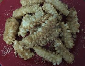 刀功不行,超市买切好的鱿鱼花。先把鱿鱼花解冻,放点盐腌一下。