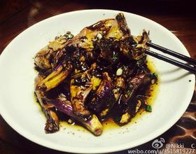 加入炒好的茄子,加入淀粉勾芡,一点酱油,最后加入盐,白糖。