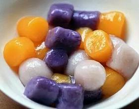 - 7. 把制作好的芋艿、红薯、紫薯芋圆分别装在碗里装好