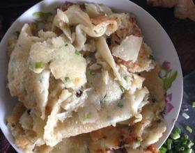 先把葱切碎,备用,然后把鸡蛋放入一个盆中,用筷子搅碎,依次加入面粉,水,盐,鸡精,调味料,搅拌均匀成糊放入葱花