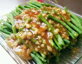 翻炒均匀,汤汁粘稠就可以将蒜蓉汁浇在豇豆上面了