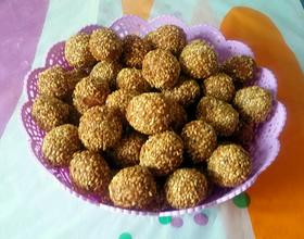 油温很重要,七成热炸出是开口笑,五成热油炸出是芝麻球,技巧就在这里