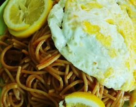 煎个鸡蛋,熟的程度自己喜欢,放置意大利面上