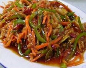- 9. 翻炒数下后,将水淀粉调味酱倒入,再将萝卜丝,尖椒丝,黑木耳倒入翻炒至熟,装盘即可。