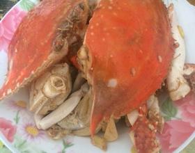 煎至螃蟹微微变色,下姜丝辣椒大蒜,葱头段煸香