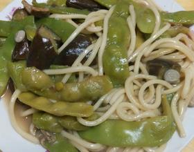 - 5. 加入茄子,继续翻炒,至茄子变色,加入盐,鸡精及花椒粉,并放入适量酱油