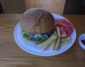 生菜上加一层煎蛋,挤上沙拉酱,盖上汉堡包的上层即可;