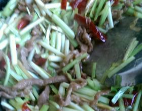 加入泡椒,泡姜丝炒香