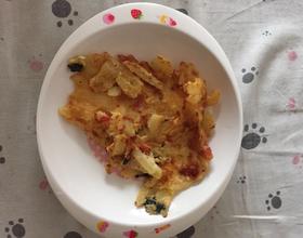 土豆丝 西红柿 紫菜 放入蛋液中 加入适量面粉 搅拌均匀