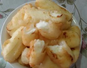 - 7. 锅里放油,用中小火,把鲜奶糕裹匀面糊,油温2-3热入锅,炸40秒捞出,装盘。