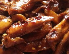 倒入鸡尖翻炒,加入适量的黄酒炒香,加入酱油、适量的水煮卤