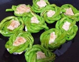 把猪肉剁碎,先放淀粉搅拌让肉更松软,再放入酱油盐胡椒粉调味。