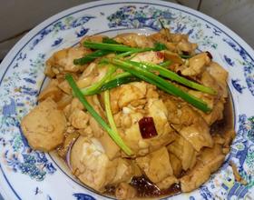 放入水豆腐、生抽中火煮两三分钟,放适量老抽调色