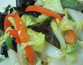 材料准备:娃娃菜洗干净切粗丝,青红椒切粗丝备用