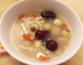 锅里加适量水烧开,莲子,红枣,糯米,燕麦,一起入锅煮,中火煮30分钟。