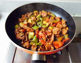- 4. 然后放入蚝油,老抽,生抽,番茄酱,白糖,翻炒一分钟,倒入开水淹过排骨,放少许盐调味,盖上锅盖煮开。煮开后倒入青椒和番茄,喜欢吃茄子的可以加点茄块进去,我就放了一根青茄子,很好吃。然后盖上锅盖,等待再次煮开,掀开可以闻到青椒的香味,青椒就是起这个作用的。