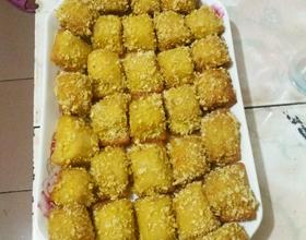 - 7. 沾好的香蕉土司,放入托盘里,锅里烧好热油,等油温冒青烟时,立即下香蕉土司,炸一分钟马上起锅,否则会炸糊。(切忌:油温不能过高,香蕉要熟的香蕉,我建议土司还是自己在家里烤。要家里有烤箱的。没有烤箱,就到蛋糕店去购买,购买土司不能买太软的土司,太软的土司做出来效果不是很好。)