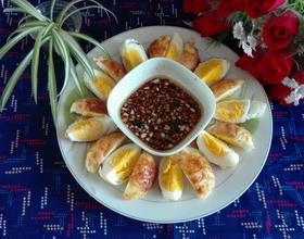 大约炸五分钟左右炸至鸡蛋金黄色捞出控油装盘备用