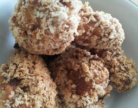 鸡翅根蒸好后出锅,先粘面粉,表面一层,不要太多,然后沾鸡蛋液,最后面包糠。