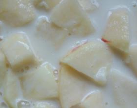 将苹果去皮,切成块入碗