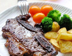 将黑椒粉均匀撒在牛排上方,再将一包黑椒汁均匀的挤在牛排上
