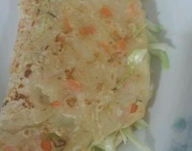 - 11. 煎出来也可以把切细丝的卷心菜也可以放在里面,因为饼很烫可以把卷心菜烫熟,可以放些番茄酱。我这里没放。