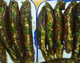 茄子需要凉透,把腌制好的料放入其中,蒜多些味道会比较好,做好后装盘,用保鲜膜包好,放冰箱冷藏,3-5小时之后取出来,味道最佳!