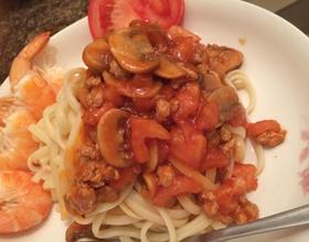 差不多熟之后,放番茄块,番茄酱,番茄酱多少看个人,本人觉得多点好吃。