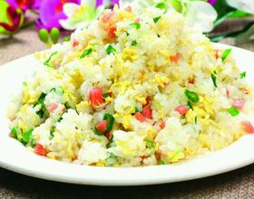 蛋黄搅拌,加点儿盐,锅内热油,撒葱花爆香,倒入蛋黄,蛋黄快干下米饭