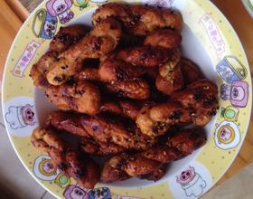 揉好的小麻花裹一层蜂蜜在裹芝麻