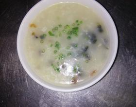此量是四碗粥的量,肉粒要浆一下再沸水过凉水,这样去腥还滑嫩。松花蛋要蒸10分钟才好切。爱吃锅巴的话,粥盛碗里后上面放点五香锅巴粥更香滑,还带香脆。