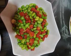 倒入黄豆翻炒一分钟,在倒入胡萝卜翻炒,加盐味精起锅