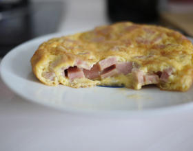 鸡蛋打散,加入午餐肉丁、盐、胡椒粉搅拌均匀。