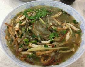 第一:准备水粉(一般是自己做的粉)。第二:洗一下水粉,在用刀子糟一下(太长) - 2. 第一:准备好的炸土豆丝,香菜。第二:准备羊杂汤(这个比较麻烦)。锅中用清水烧开,放入羊肚、肠、心及葱段、姜片、花椒、大料、盐,大火烧开,后改用小火炖二小时以上,直至软烂,捞出,原汤备用。这既是汤了。(这个比较麻烦)但是为了美食。