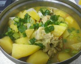 热油锅,将土豆控干下锅,炒到表皮成金黄色,加入排骨再一起炒两到三分钟
