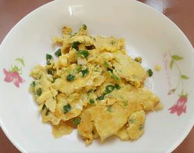 鸡蛋打到盆里面,葱花也放进去。放半勺盐,用筷子顺时针搅拌圴勺。