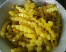 中等洋芋四品,去皮,切成这样,用水淘洗,去淀粉,控水