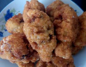面粉不要沾的太厚,面包糠可以多沾一些,这样比较酥脆,喜欢吃辣的可以在淹的时候放一些辣椒,我做的因为孩子吃就没有放