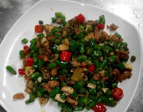 - 5. 锅烧热,加油,姜蒜片炒香,加鲜花椒,加青二筋条,炒出辣味,下蘑菇与鸡丁翻炒,加花椒油,翻炒,叫盐,鸡精,味精,白糖,胡椒粉,炒匀,加香油起锅。