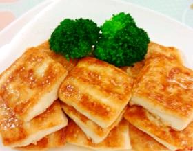 豆腐煎至两面金黄色就可以停火上碟咯!~