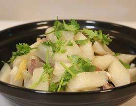- 10. 出锅装盘,撒上香菜,一道色香味俱全的萝卜炖羊肉就展现在大家面前了