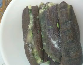 - 4. 拿起茄子从中间花开放入上部拌好的蒜泥